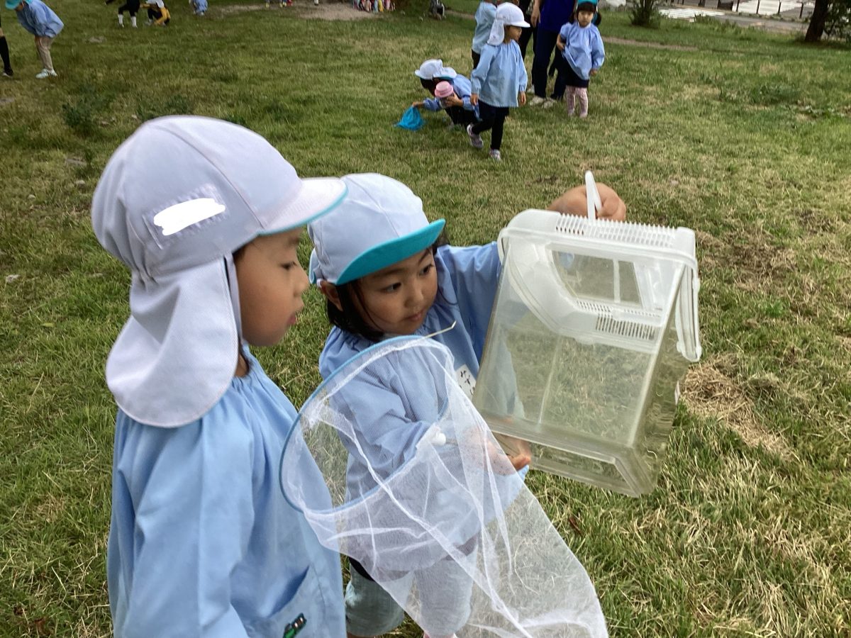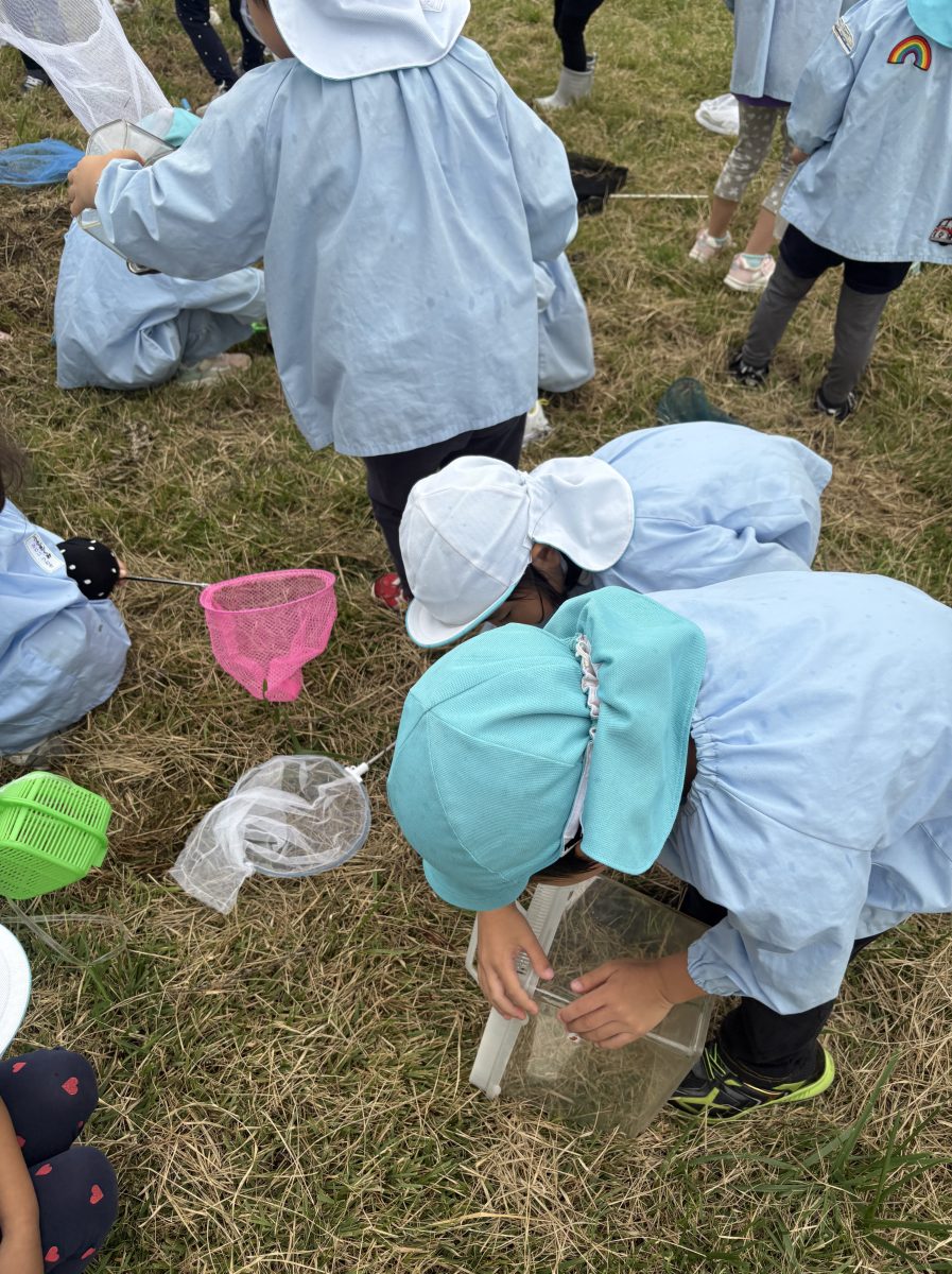 網を使って捕まえたり、手を使って捕まえたりする子もいました😳