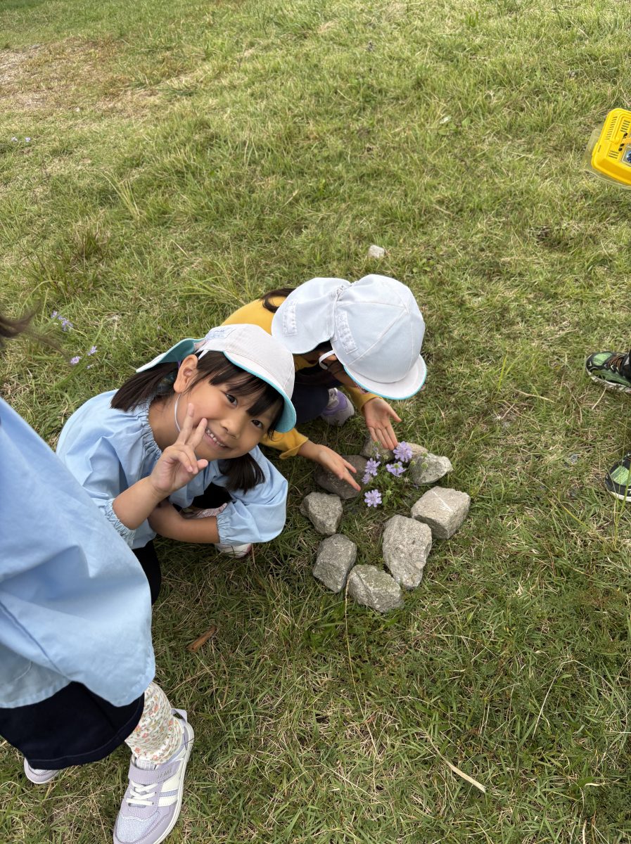 中には、咲いているお花を石で囲ってお花パーティー💐