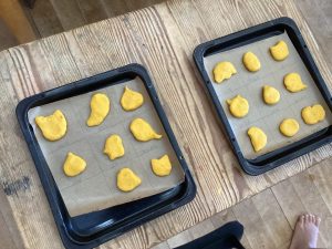 自分のクッキーを、ハロウィンのかぼちゃにしたり猫の形にしたり、こうもりにしたり、、