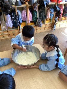 みんなでまぜまぜ いーちにーさーんしーごー と数えて交代します♩