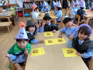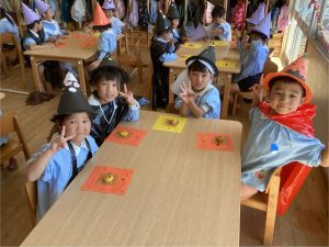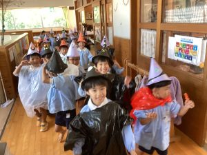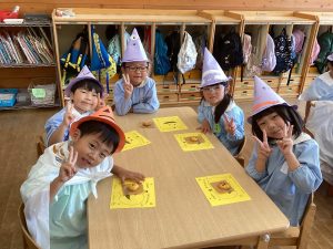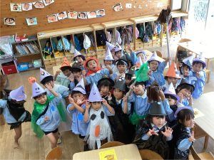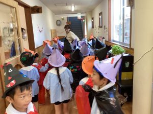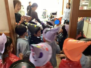 幼稚園の先生たちに、トリックオアトリート!!お菓子をくれないと