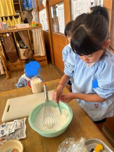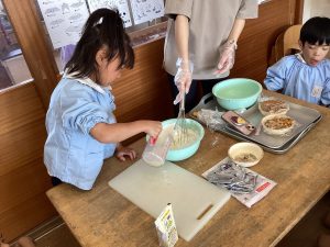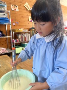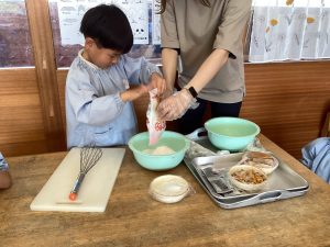 クッキーを焼いている間に次はマフィンづくり! 材料を順番に入れ