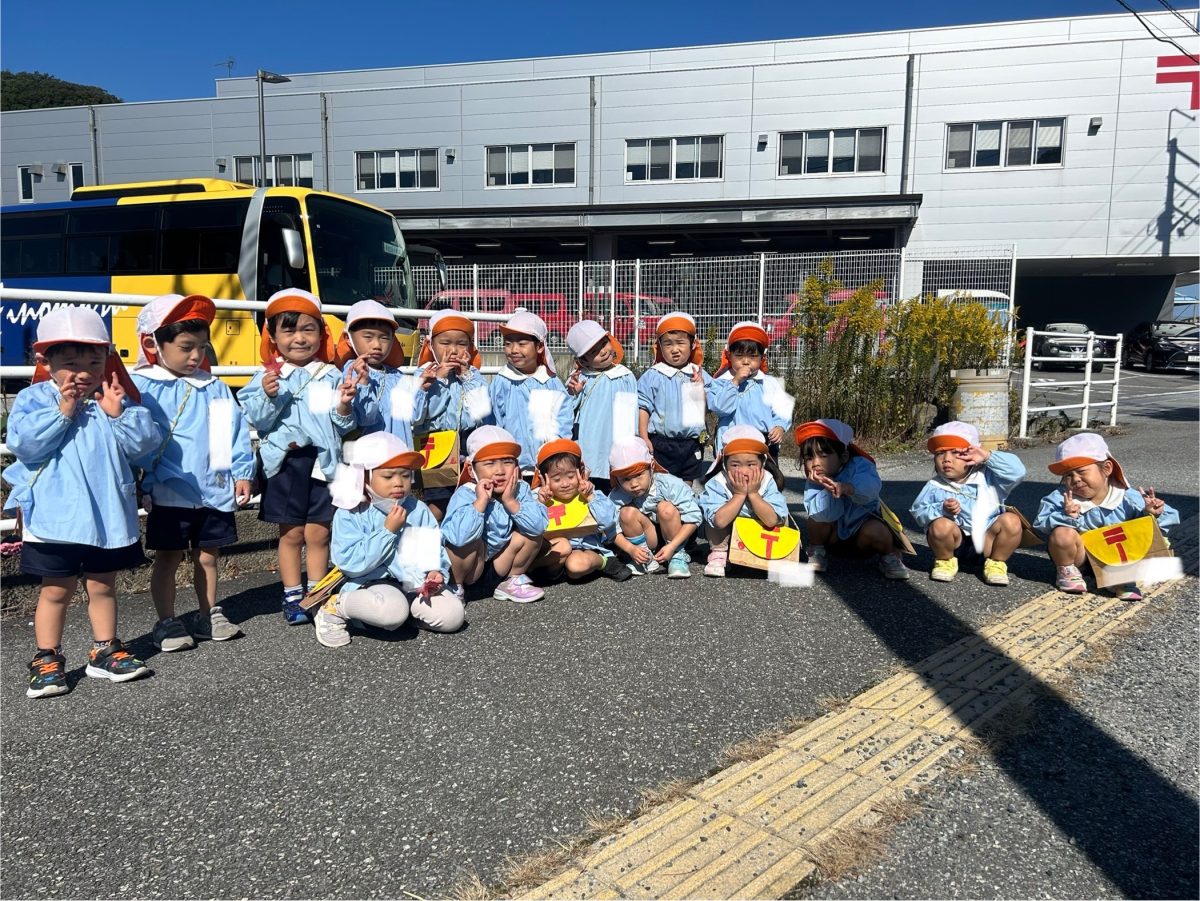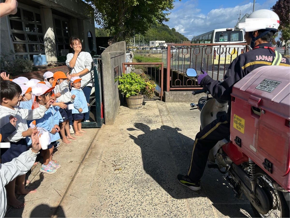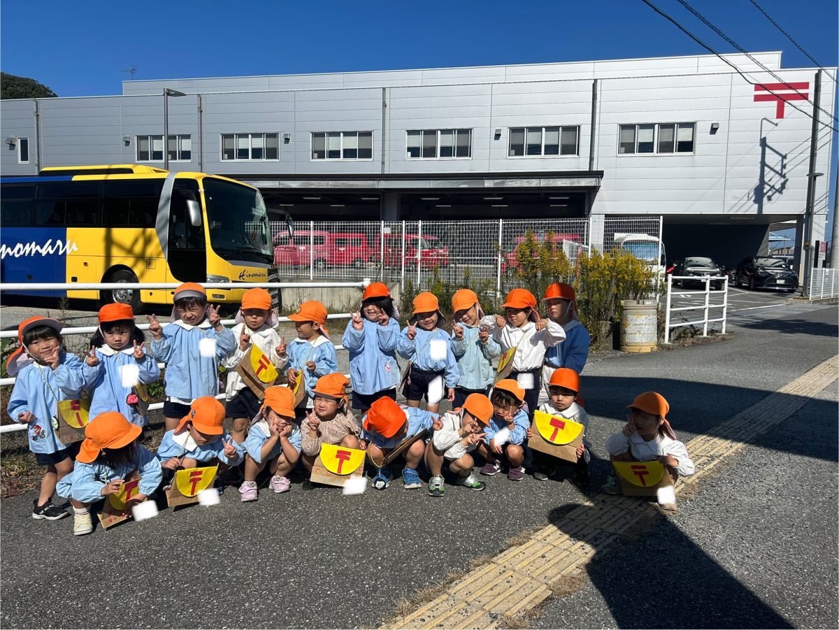 また、郵便屋さんが園に配達に来られると、興味をもって話しかけたり、手を振る子どもたち!