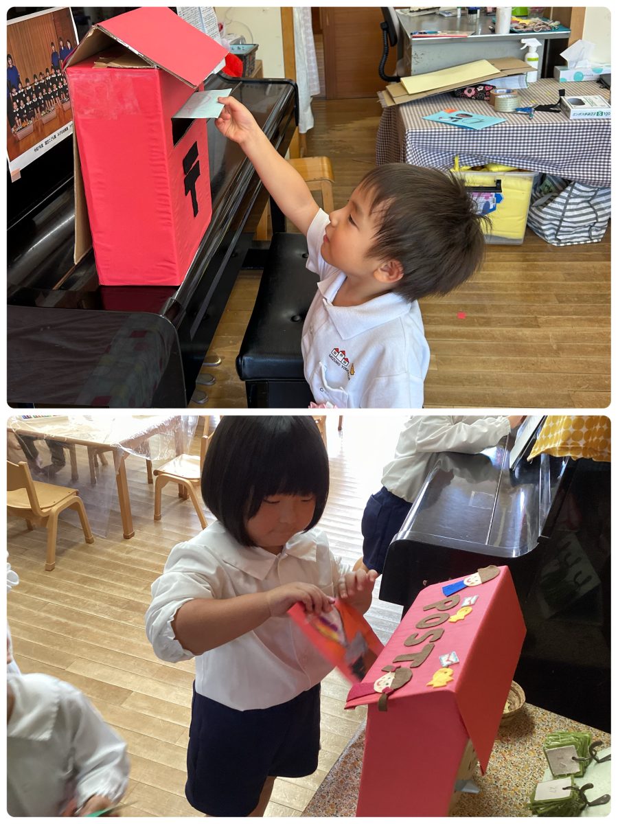 年少組では、郵便屋さんごっこが流行っており、普段からお手紙のやり取りを楽しむ姿が見られています👀