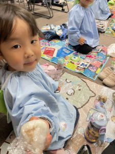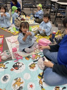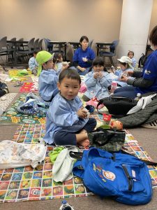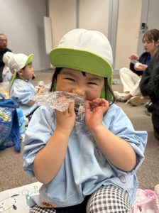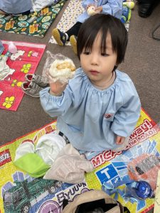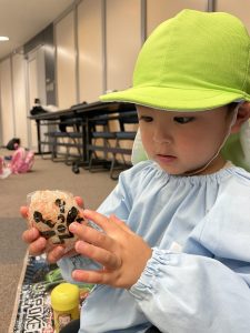 「いっしょにたべよ♡」「みてー!3こある♡」 みんなで食べるおにぎりは美味しかったね❤️
