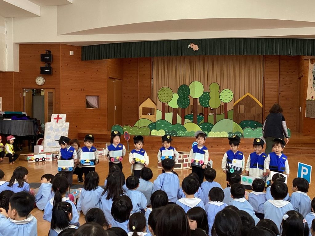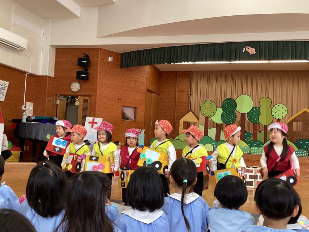 大好きなはたらくくるまに変身して、とってもはりきっている子どもたち💖