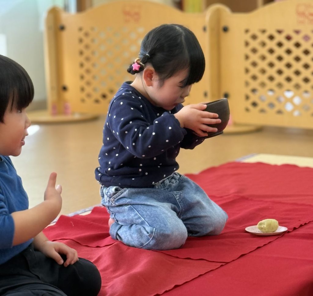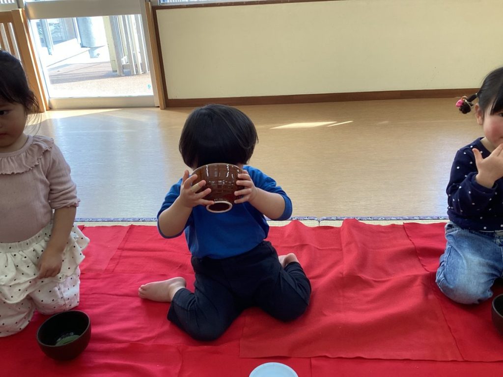 こぐま組さんもお抹茶を飲んで満面の笑み💓