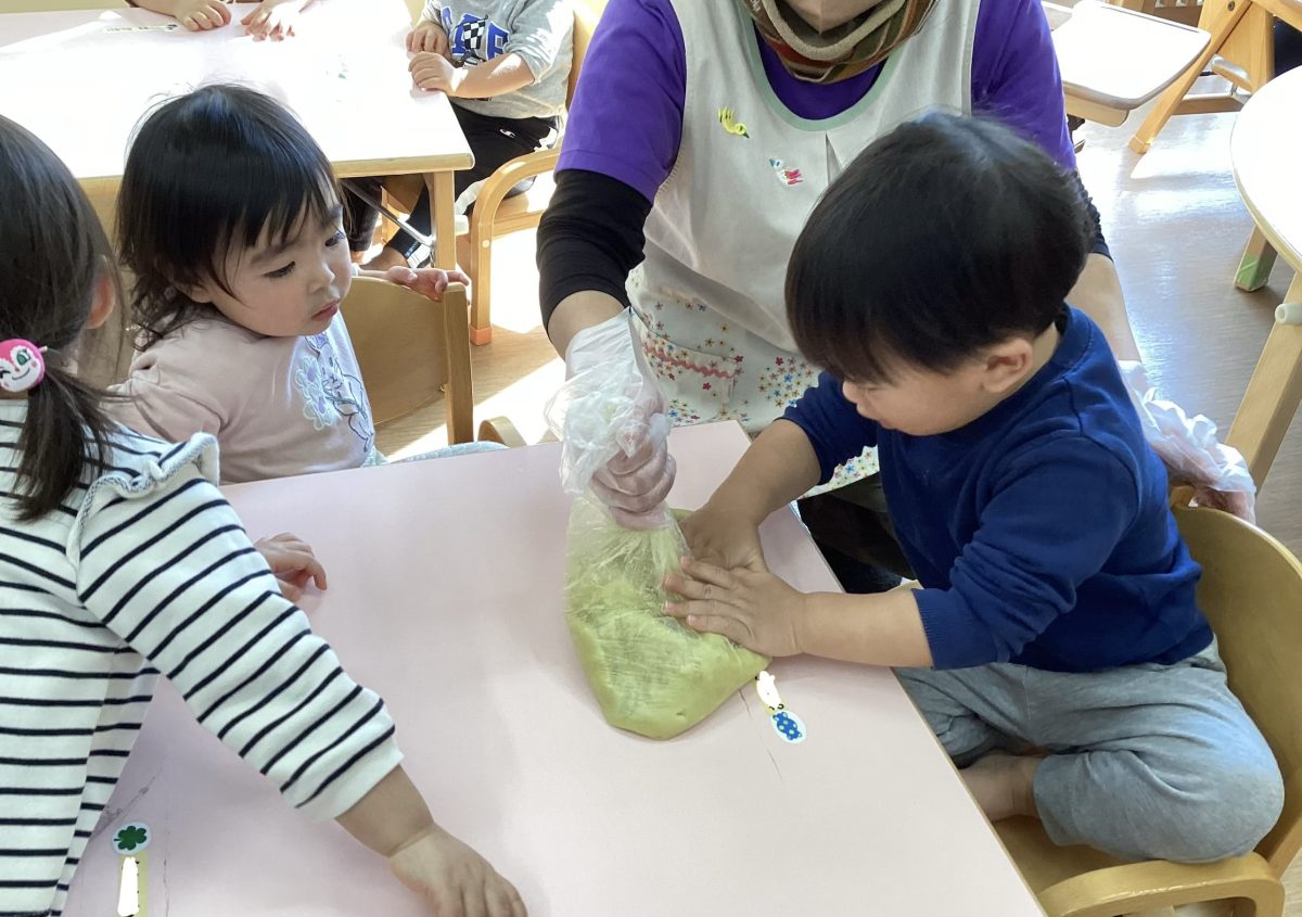 両手を使って「ぎゅー」っと言いながらする子も💓