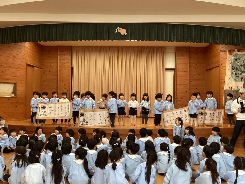 それぞれのお祝いステージが終わり、次に年長さんがパレードで歌っていた